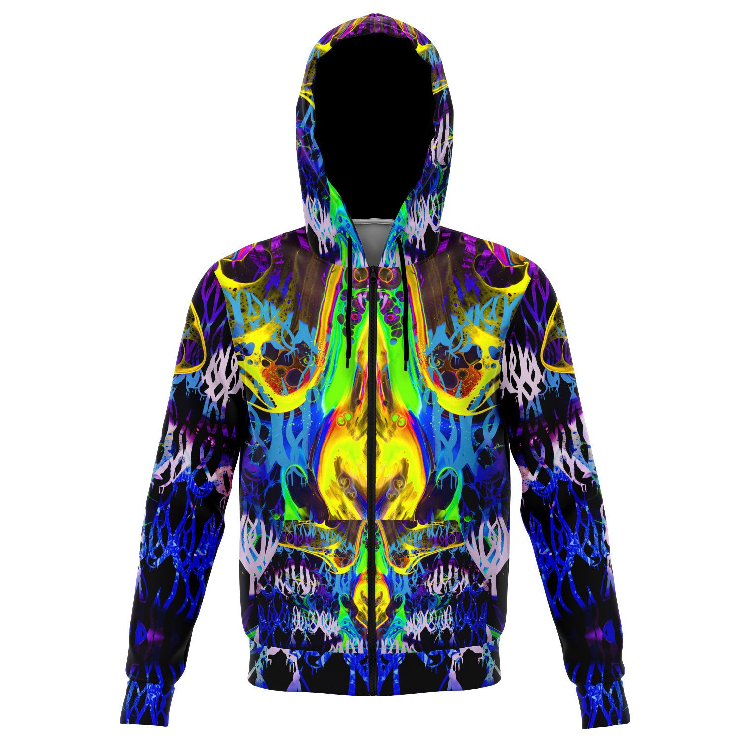 This zip-up hoodie is crafted from a premium polyester and spandex blend, making it both comfortable and durable. Each panel is individually printed, cut and sewn to ensure a flawless graphic with no imperfections. It also comes with a visible nylon zipper front closure. And high definition printing makes these a pleasure to wear for all occasions.