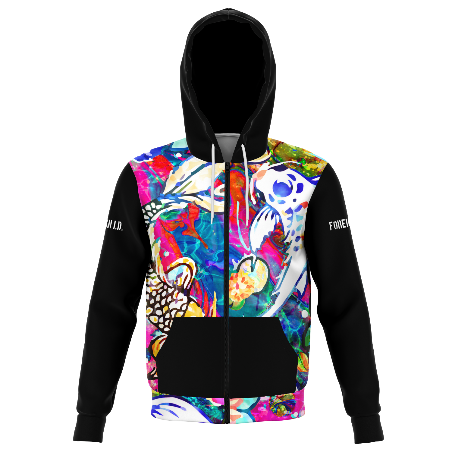 This zip-up hoodie is crafted from a premium polyester and spandex blend, making it both comfortable and durable. Each panel is individually printed, cut and sewn to ensure a flawless graphic with no imperfections. It also comes with a visible nylon zipper front closure. And high definition printing makes these a pleasure to wear for all occasions.